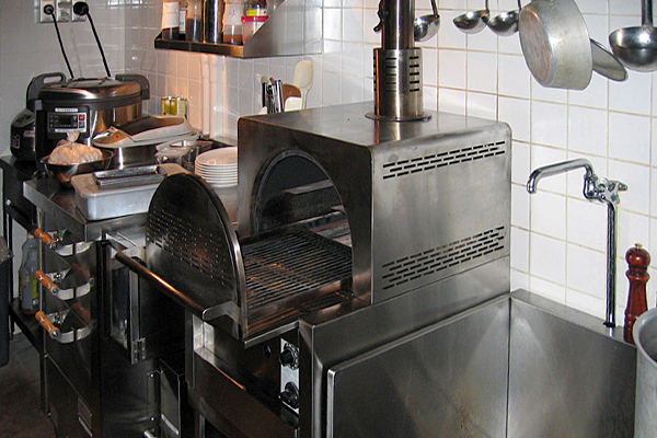 内燃機関の燃焼室原理を応用し制作したロースター。食材を裏返す事無 く皮はバリッと、中はジューシーに短時間で調理できます。