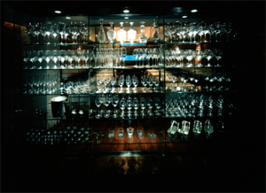 ワインそのものは品質管理上、光などをあてて演出することはできないので、免振構造の総ガラス製ワイングラスラックが空間に緊張感と華やかさを演出しています。